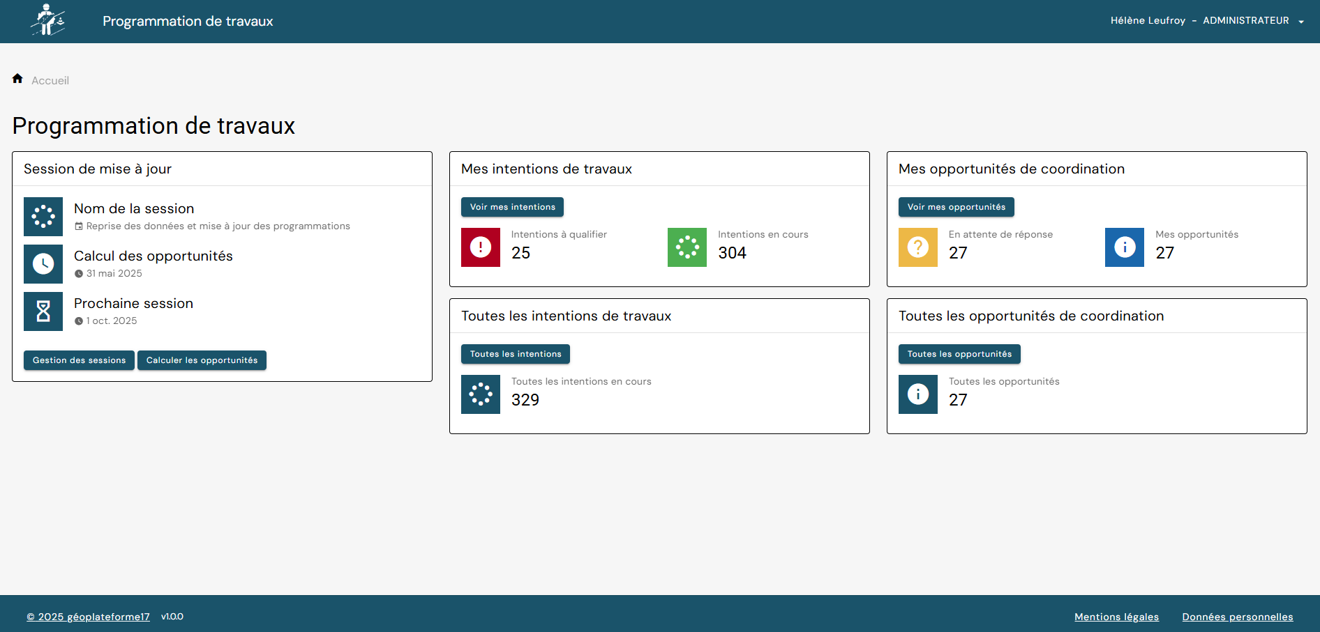 L’application permet le partage, la consultation et la recherche des programmations de travaux des différents opérateurs. Un calcul permet également de mettre en valeurs des opportunités de coordination et d’interagir avec les autres parties prenantes.