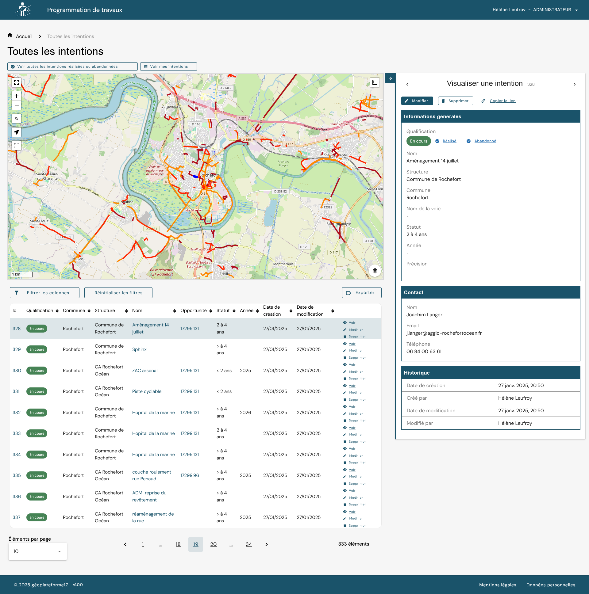 Vous vous sentez concernés par ce sujet ? Vous êtes intéressés pour avoir une présentation de la démarche et de l'application ? Contactez : Cette adresse e-mail est protégée contre les robots spammeurs. Vous devez activer le JavaScript pour la visualiser. et demandez un compte sur : www.prog-travaux.geoplateforme17.fr
